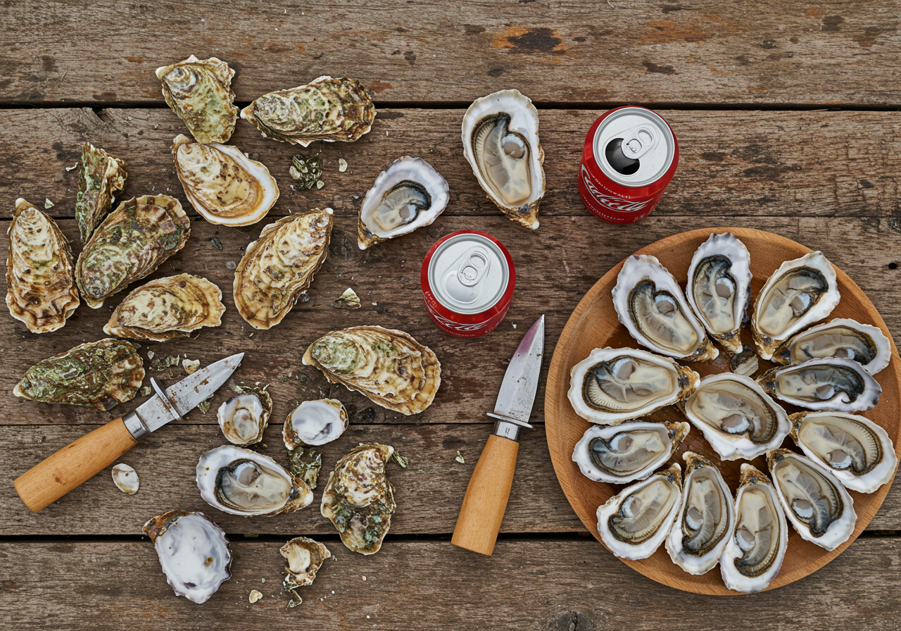 The cooking process itself involves cleaning the oysters and placing them on a metal sheet over an open fire or grill, then covering the pile with a wet burlap sack or towel until the steam underneath cooks the oysters and forces their shells to pop open. After 8 or 10 minutes the oysters are transferred to tables often covered with newspaper, where they are immediately, sometimes voraciously, consumed, often along with a good beer, wine, or cocktail.