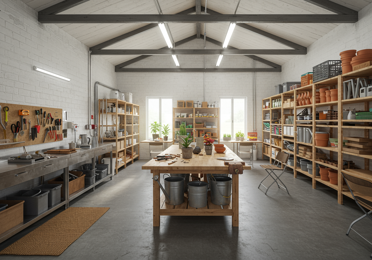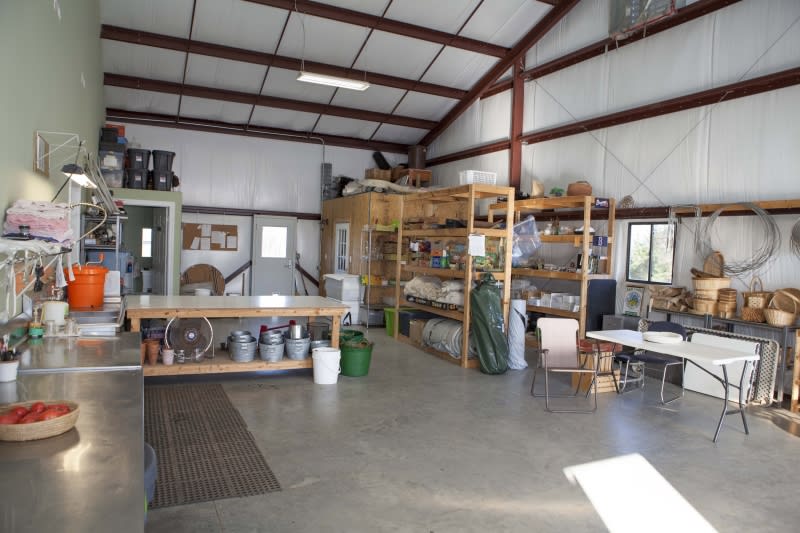 - barns and outbuildings, such as livestock shelters, produce processing or storage spaces, and storage for hay, feed, and equipment