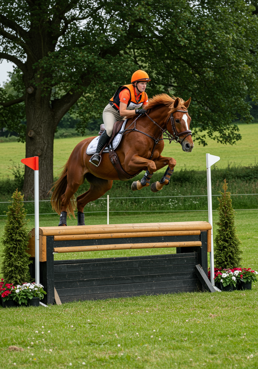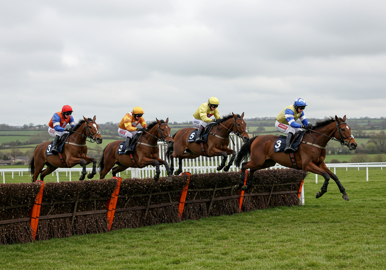 Steeplechase courses have pre-determined routes and distances – usually somewhere between 2 and 4 miles – with grass or turf surfaces and various types of fence and ditch obstacles: water jumps, timber rails (wooden posts and rails) and brush fences, for instance. In the U.S., most obstacles, popularly known by the term “National Fences,” consist of a steel frame stuffed with plastic “brush” and a foam-rubber roll covered with green canvas, on the near side of the jump. These official National Fences are shipped from race to race ahead of time so that they are standard, race to race. No matter what part of the world the race is run or what type of obstacles are placed on the route, however, the same obstacles are used for all racers in any particular race.